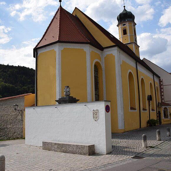 Die heutige Pfarrkirche befindet sich direkt an der ursprünglich östlichen Marktmauer. Der Kirchturm ist dem Kirchenschiff auf der Westseite aufgesetzt. In der Kirche befinden sich auf der Ostseite drei Altäre.
