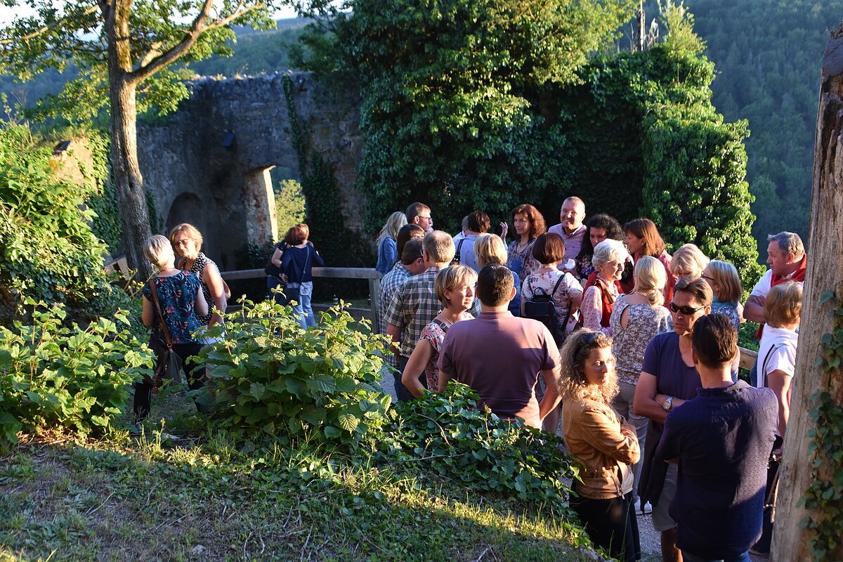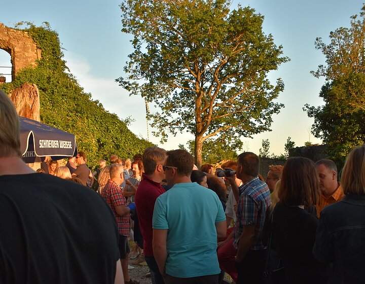 Markus Engelstädter und Bernd Meyer begeistern die Besucher in der Burgruine Randeck