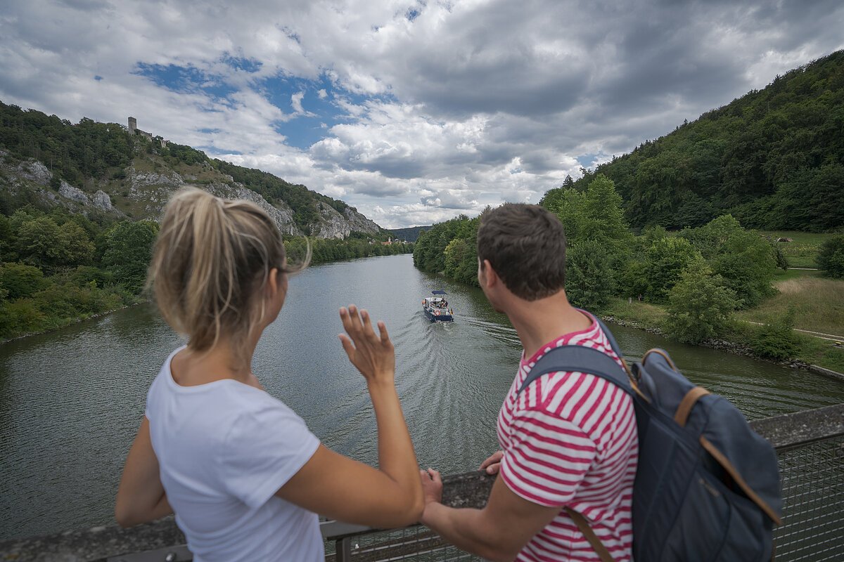 Schließlich muss man sich entscheiden: Entweder man zweigt links ab und folgt der Donau bis Kelheim. Oder man biegt rechts ab und setzt mit den romantischen „Zillen“ über zum Kloster Weltenburg mit der barocken Wallfahrtskirche der Gebrüder Asam und einem schönen Biergarten. Nach Kelheim fährt man dann mit dem Schiff durch den Donaudurchbruch; der Altmühltal-Panoramaweg endet mitten in der Kelheimer Altstadt am Ludwigsplatz.