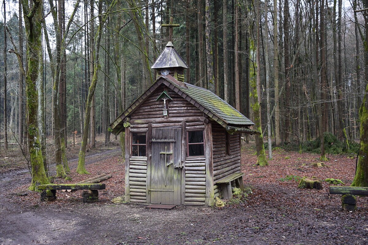 Man gelangt zum Kleinod der Waldkapelle im Hienheimer Forst. Einkehrmöglichkeiten in den Essinger Gastronomiebtrieben.